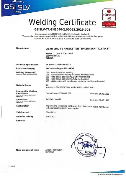 Visan Vinç ve Hareket Sistemleri Sanayi ve Ticaret LTD. ŞTİ. © 2026