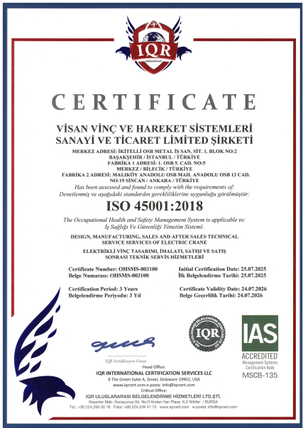 Visan Vinç ve Hareket Sistemleri Sanayi ve Ticaret LTD. ŞTİ. | Turkey’s Leading Electric Crane Manufacturer
